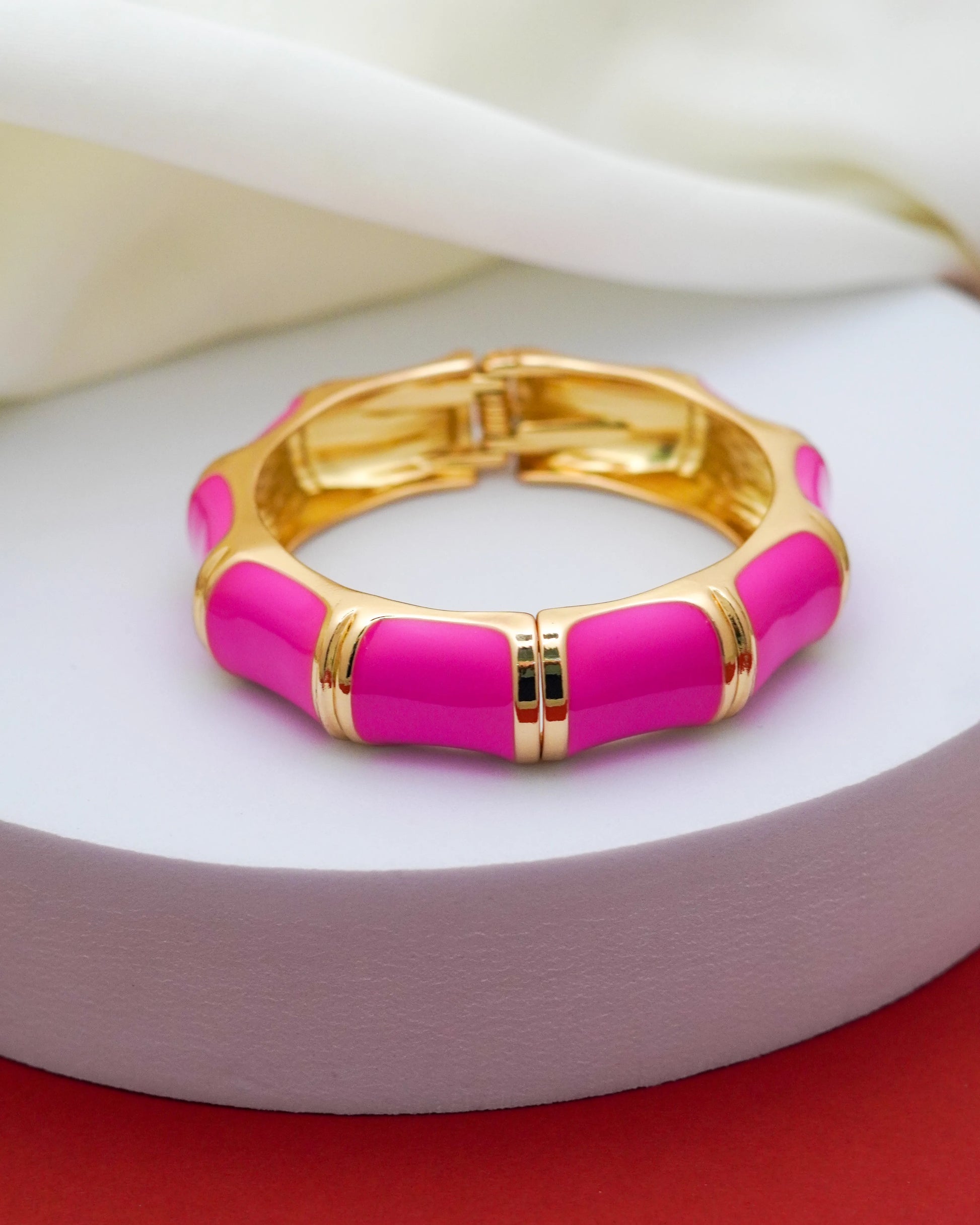 Crafted with a vibrant fuchsia enamel finish and accented with sleek gold detailing, this bracelet perfectly blends luxury and modern sophistication. Its sturdy clasp and smooth edges make it comfortable for all-day wear — ideal for both everyday chic and festive occasions.