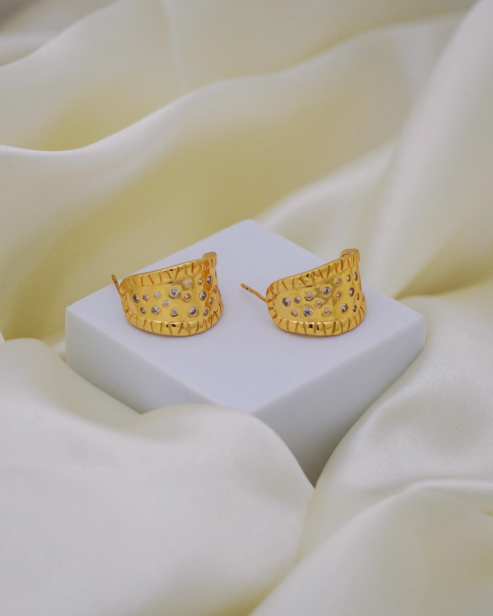 Textura Studded Hoops – 18K Gold Plated